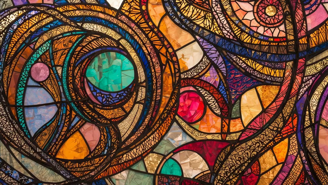 AI Generated Video. This vivid stained glass scene features a harmonious array of luminous colors and swirling motifs, capturing the beauty of sunlight streaming through. Intricately intertwined with skillful craftsmanship, the mosaic creates a mesmerizing blend of color and light. Ideal for illustrating themes of spirituality, artistic design, architecture, and decorative arts, the scene evokes tranquility and elegance while celebrating pattern complexities.