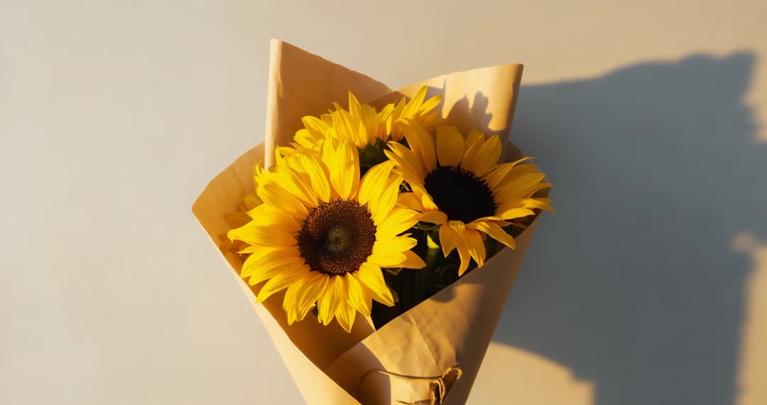 - Sunlit Sunflower Bouquet Casting Long Shadows Indoors