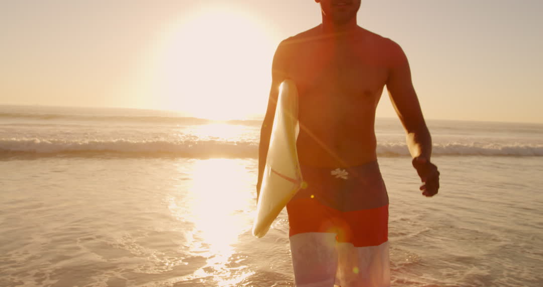 - Sunset Surf Adventure with Man on Tropical Beach