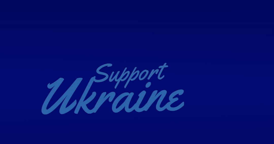 Bold text with support for Ukraine stands out against a dark blue background. Useful for awareness campaigns, sharing on social media platforms, promotional materials, educational contexts, or any content seeking to inspire solidarity and offer help. Message is impactful, promoting global community response.