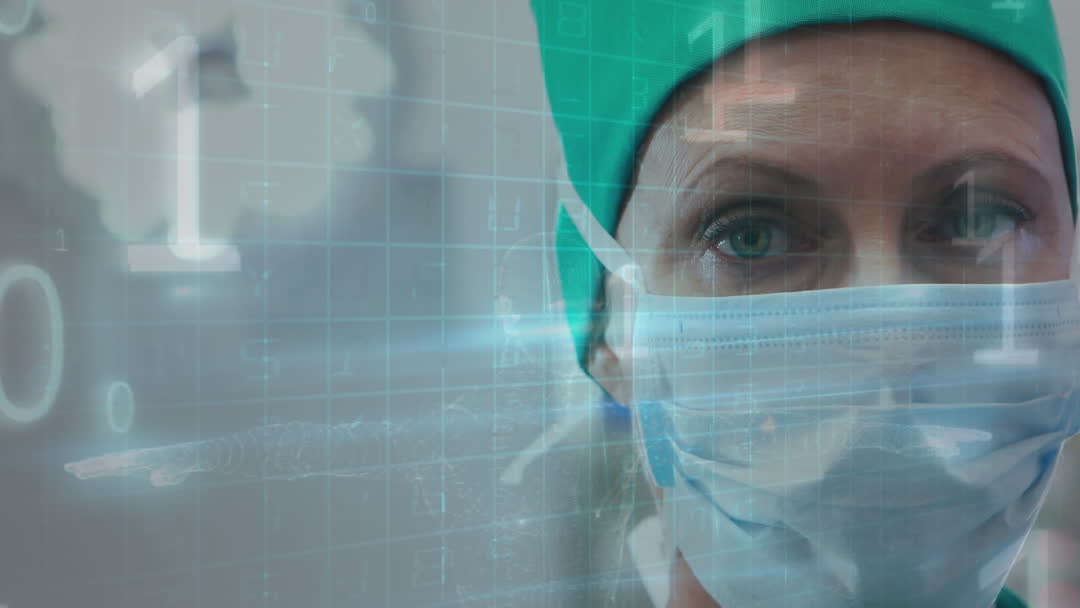 Image depicting a caucasian female surgeon viewing digital data offers captivating insights into the integration of technology in healthcare. Perfect for illustrating modern medical research, data-driven diagnostics, or showcasing technological advances in medicine. Useful for articles, websites, and presentations on innovative healthcare solutions.