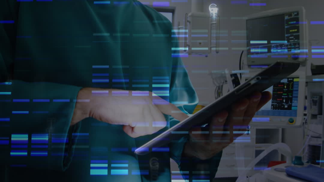 - Surgeon Operating Digital Tablet With Data Overlay in Modern Medical Setting