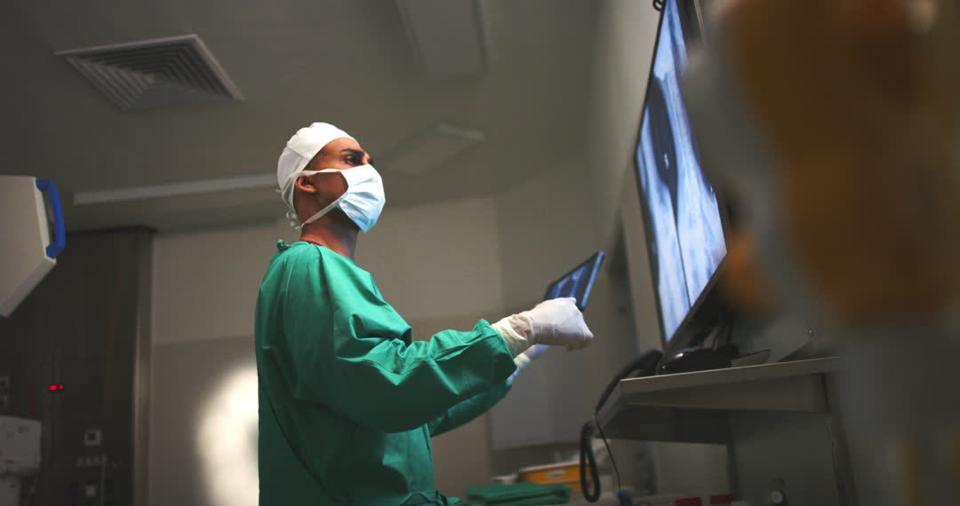 Surgeon Reviewing X-Ray Scans in Advanced Operating Room Video
