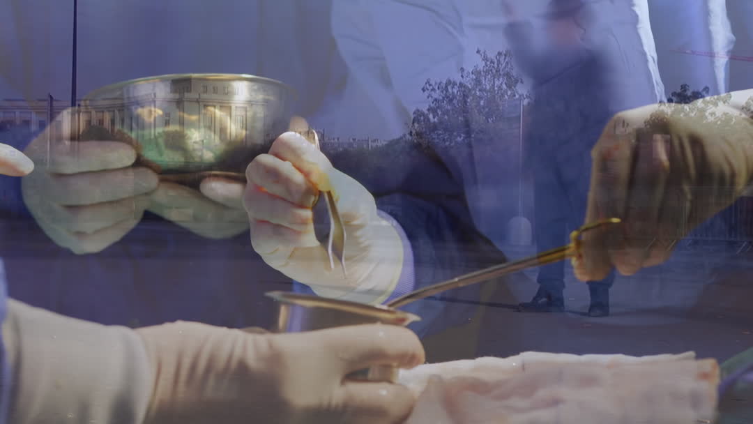 Surgeons at Work Overlaid with City Life Timelapse Video