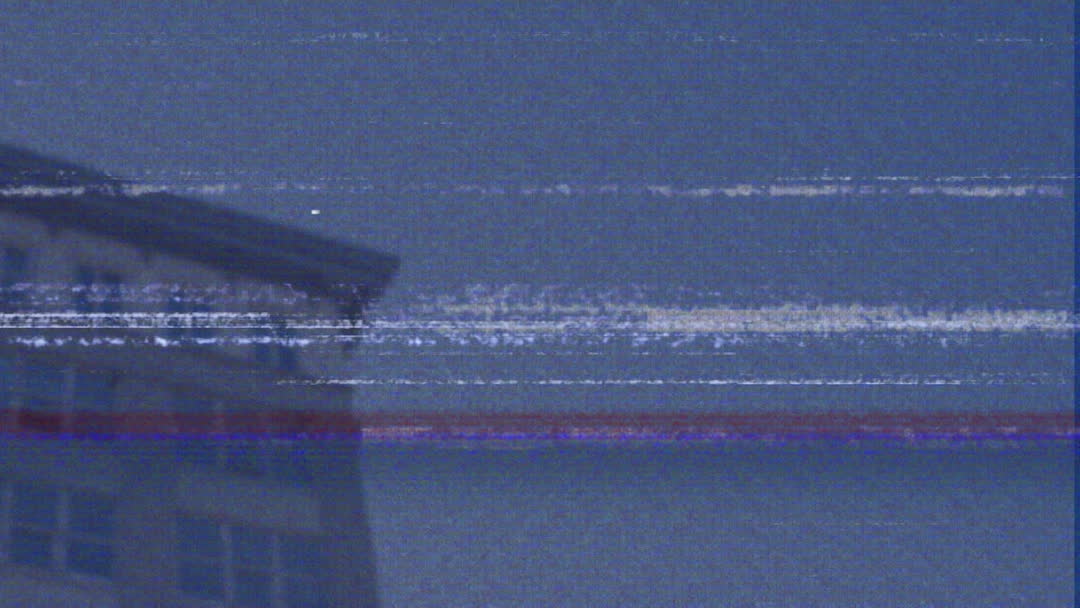 Animated visualization of data processing superimposed over a city skyline with electricity pylons in the background. Features colorful stripes suggesting interference or data transmission, creating a surreal and digital atmosphere. Ideal for concepts related to technology, global connections, digital communication, and futuristic themes. Suitable for use in presentations, videos, and multimedia projects highlighting modern automation.