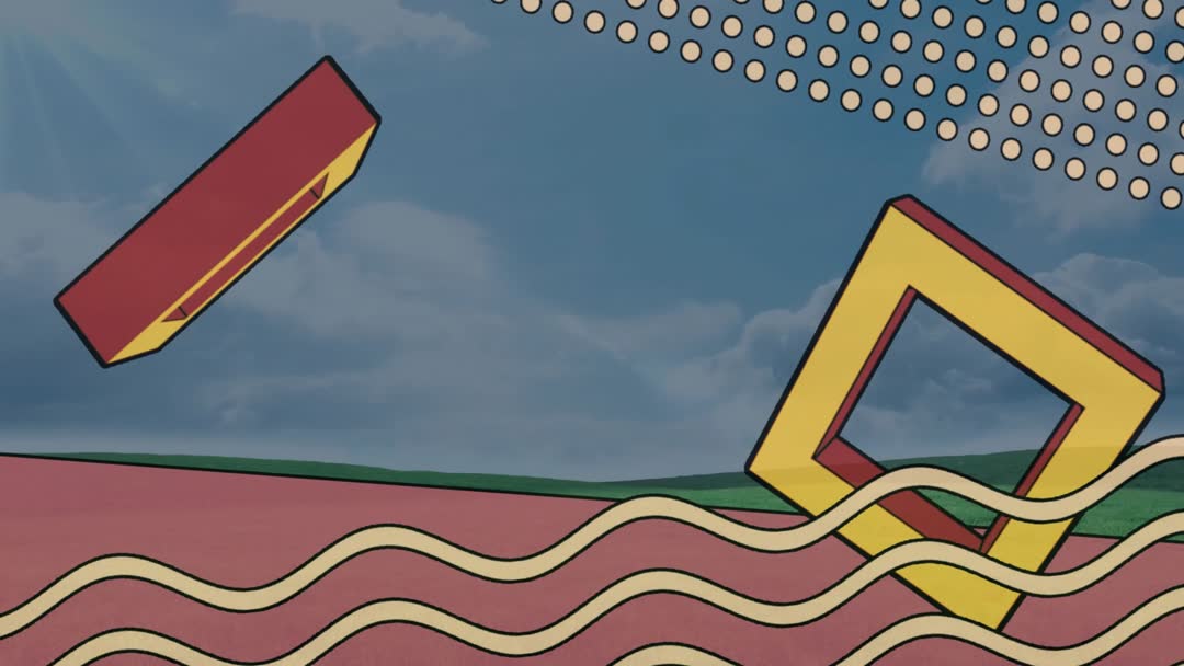 Surreal Landscape with Floating Geometric Shapes in Vibrant Minimalism Video