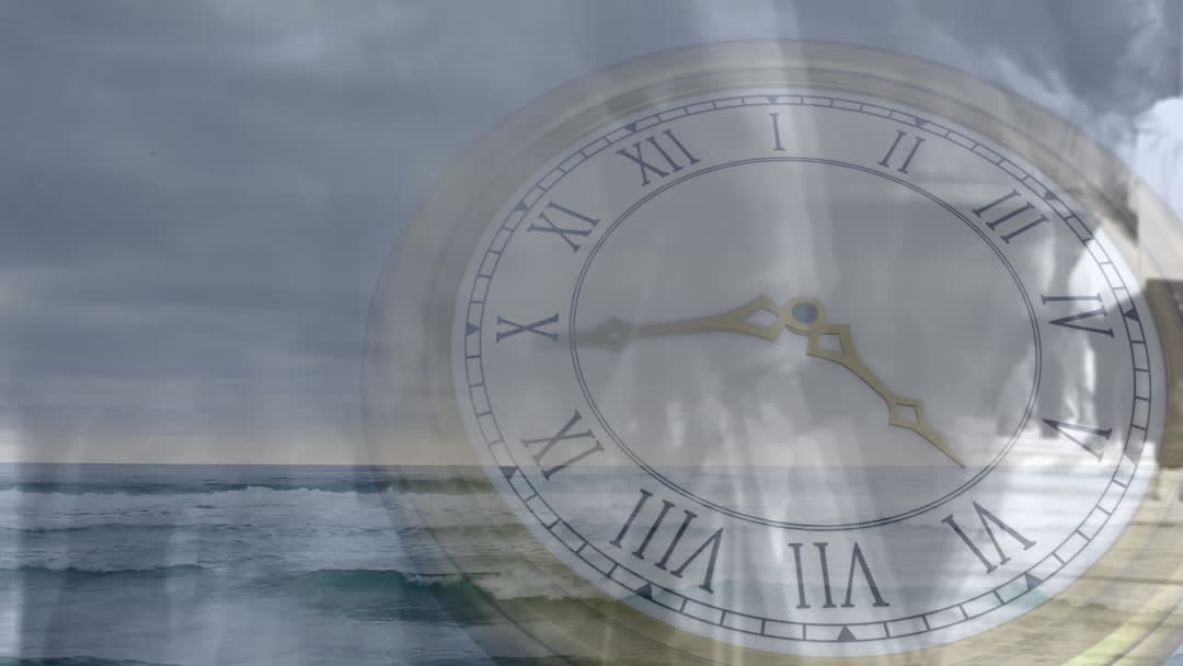 - Surreal Montage of Clock and Ocean Waves with Overlay of People