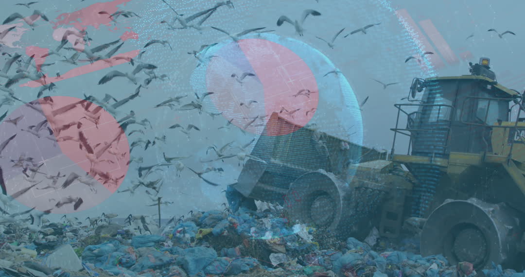 Composite animation showing digital statistics overlaying a scene of waste management involving a bulldozer in a landfill. Illustrates concepts of environmental challenges and mitigating planet's waste accumulation. Can be used for content on sustainability initiatives, global environmental assessments, and technology in waste reduction strategies.