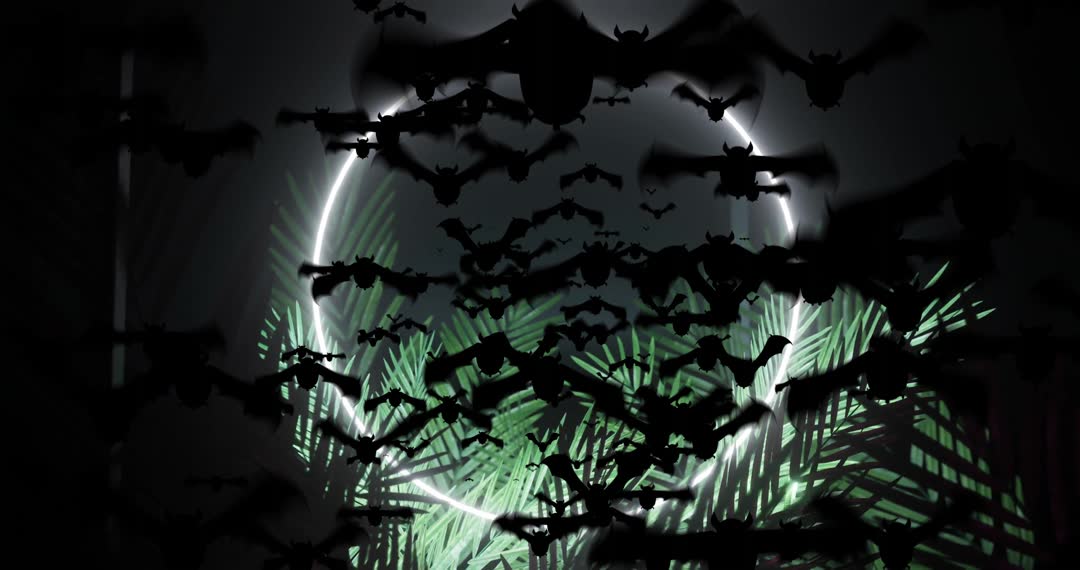 <a target="_blank" href=https://pikwizard.com/video/swarm-of-bats-with-neon-ring-and-palm-fronds/f1f671d6b0a70c0b176b49480826655a/>PikWizard</a>