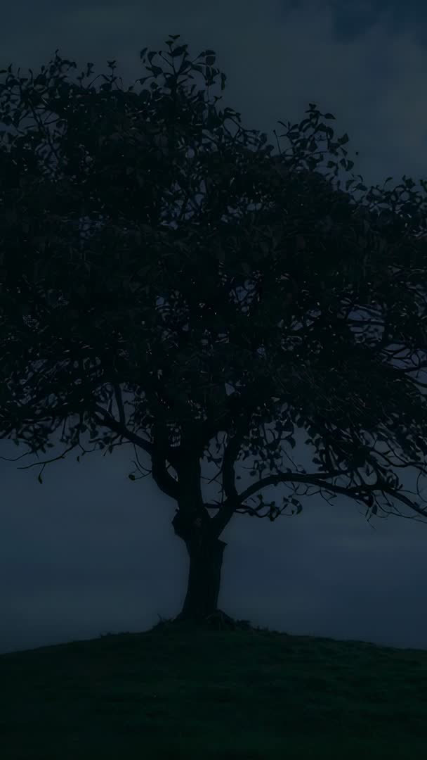 - Swaying Lone Tree Silhouetting Against Moody Twilight Sky | Vertical Cinematic Clip