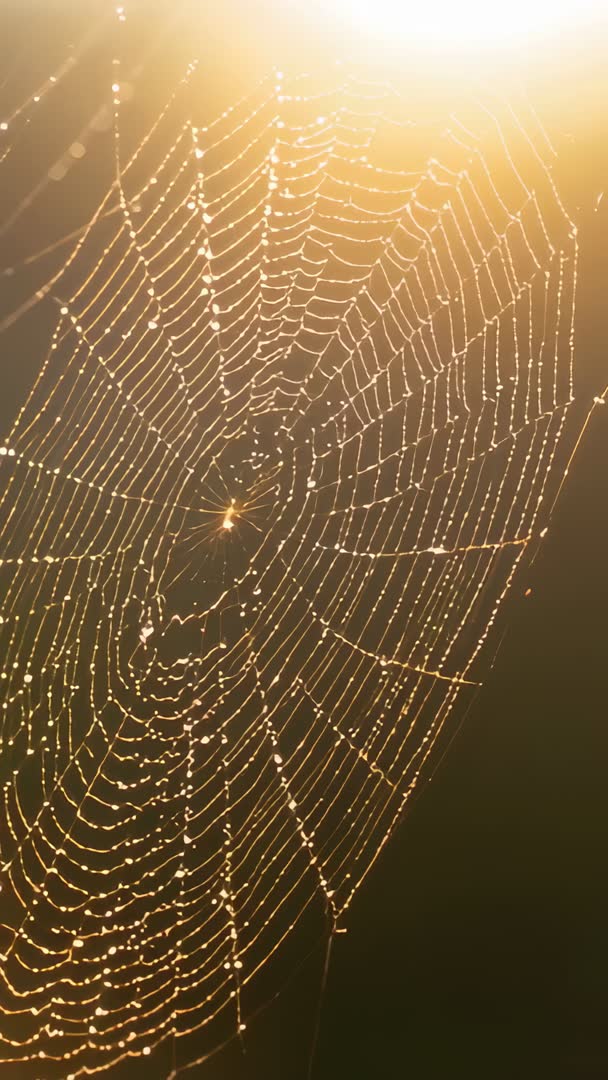 - Swaying Sunlit Spiderweb Glowing with Dewdrops at Sunrise Vertical Video