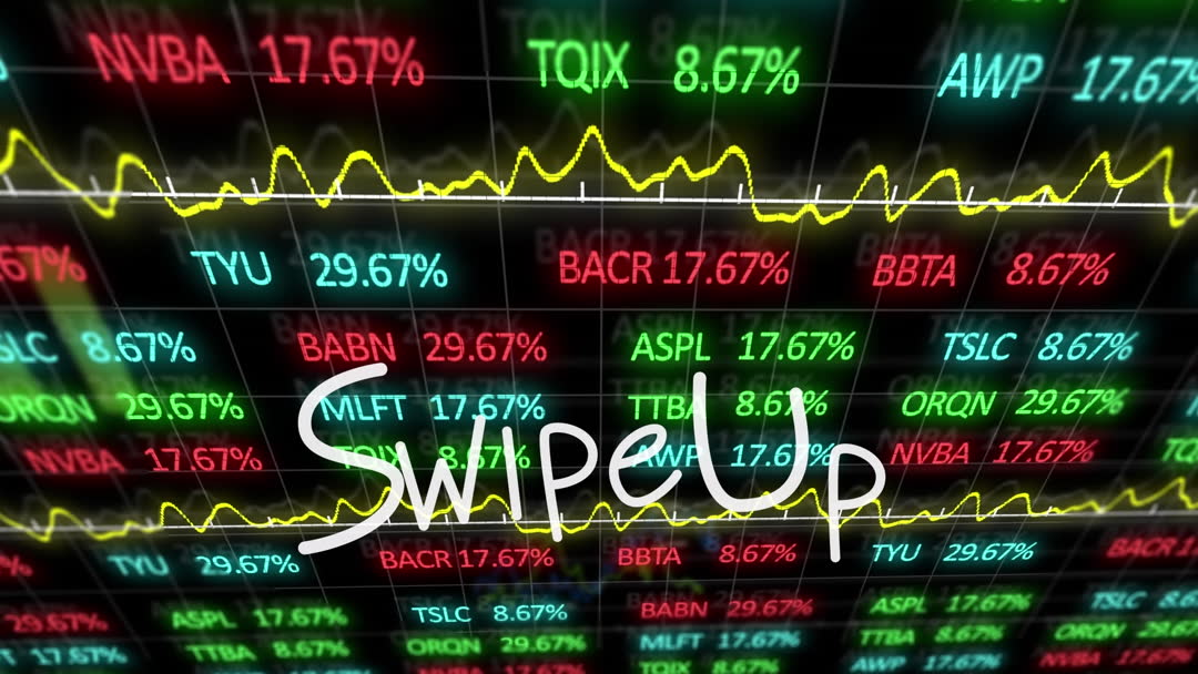 Energetic animation illustrating the dynamic movement within financial markets, featuring 'Swipe Up' text for engaging digital content. Ideal for use in social media promotions, financial technology advertising, and digital campaigns aimed at tech-savvy audiences exploring market trends and innovative platforms.