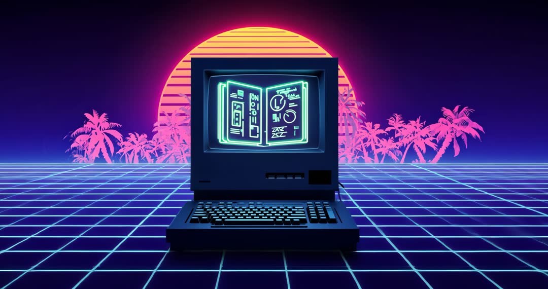 Synthwave Neon Grid and Vintage Computer Animation Video