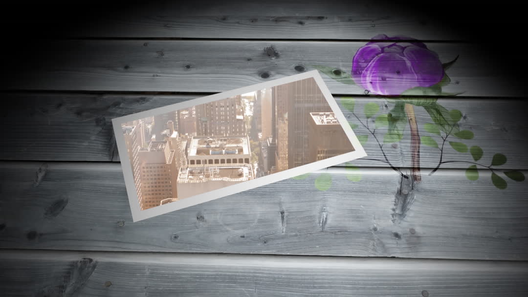 Animation presents a modern cityscape showcased on a tablet that rests on a wooden board background, with floral illustrations. Perfect for themes of global connectivity, blending nature and technology, and modern communication. Suitable for use in presentations, digital communication marketing, or tech-related content highlighting urban-modern aesthetics.