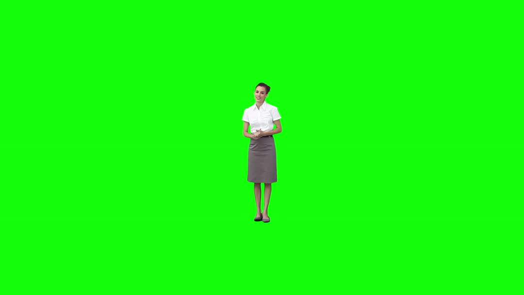 This video shows a teacher in business attire engaging in a lecture or presentation. The green background indicates flexibility for digital content creators to insert their custom backgrounds or videos. This setup is ideal for educational platforms, marketing materials, or videos where the instructor-explaining concept needs to be adaptable to different themes or topics.