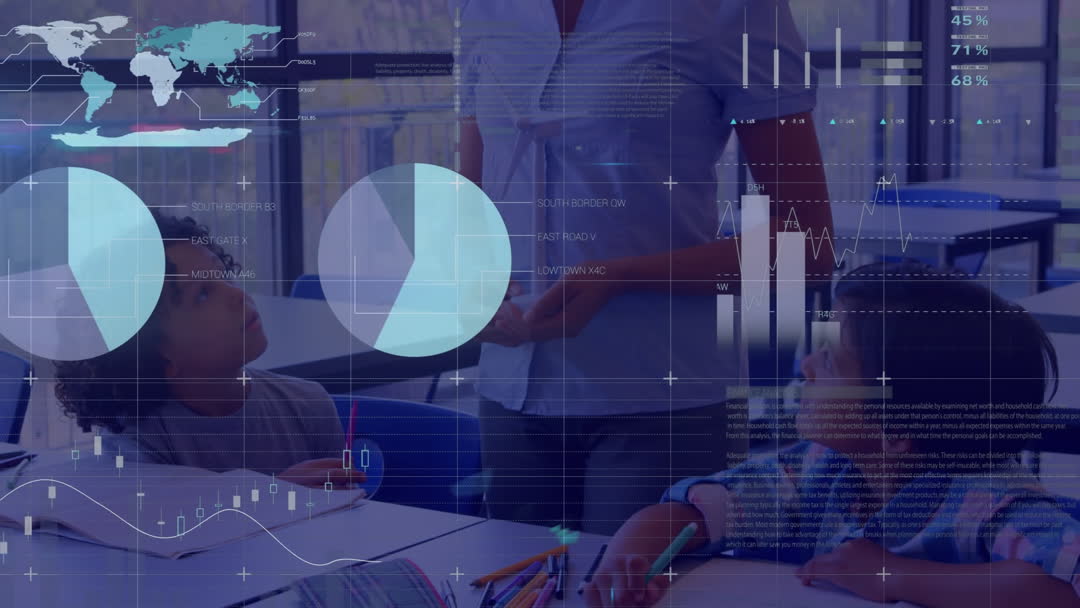 Teacher Integrating Digital Data with Diverse Students in Modern Classroom Video