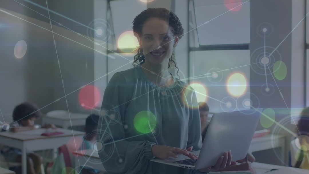Teacher with Digital Network Overlays in Classroom Environment Video
