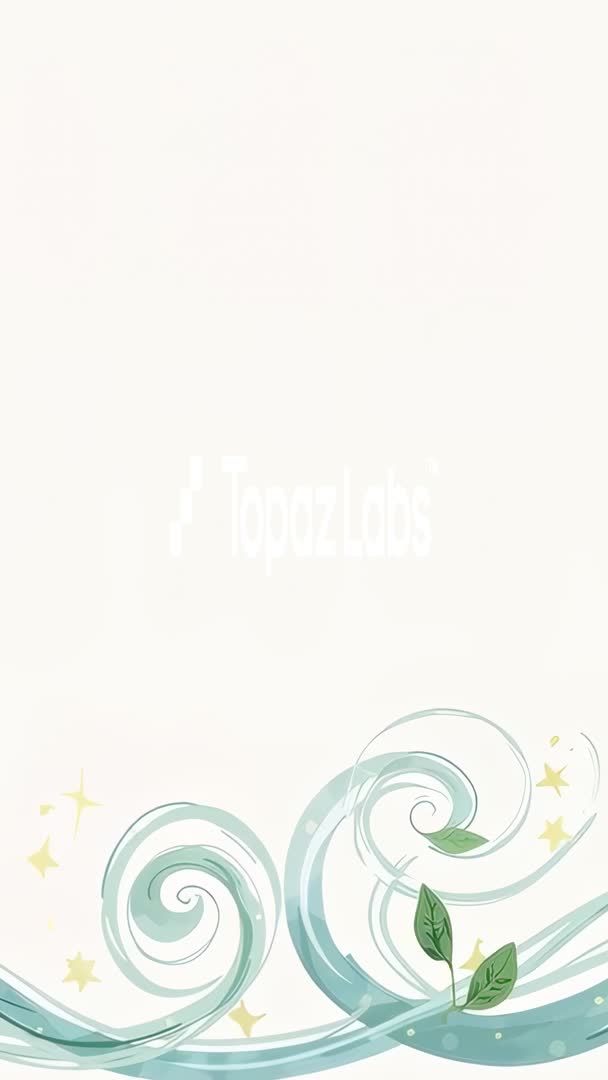 AI Generated Video. Featuring teal wave swirls rising from bottom edge, animating gentle motion over soft cream canvas. Incorporating small green leaves and subtle star highlights, enhancing organic decorative feel. Serving as vertical looping clip for mobile stories and full-screen phone playback, providing seamless repeat for Instagram, TikTok, Snapchat, and app intros. Working well for wellness and spa branding, eco product promos, spring campaigns, wedding invitation loops, or calming background behind text overlays and lower thirds. Delivering pastel color palette and minimalist vector style for easy color grading and brand integration. Including faint center logo watermark that can be replaced during licensing. Providing ready-to-use loop for website hero sections, digital signage, presentation slides, and phone wallpapers.