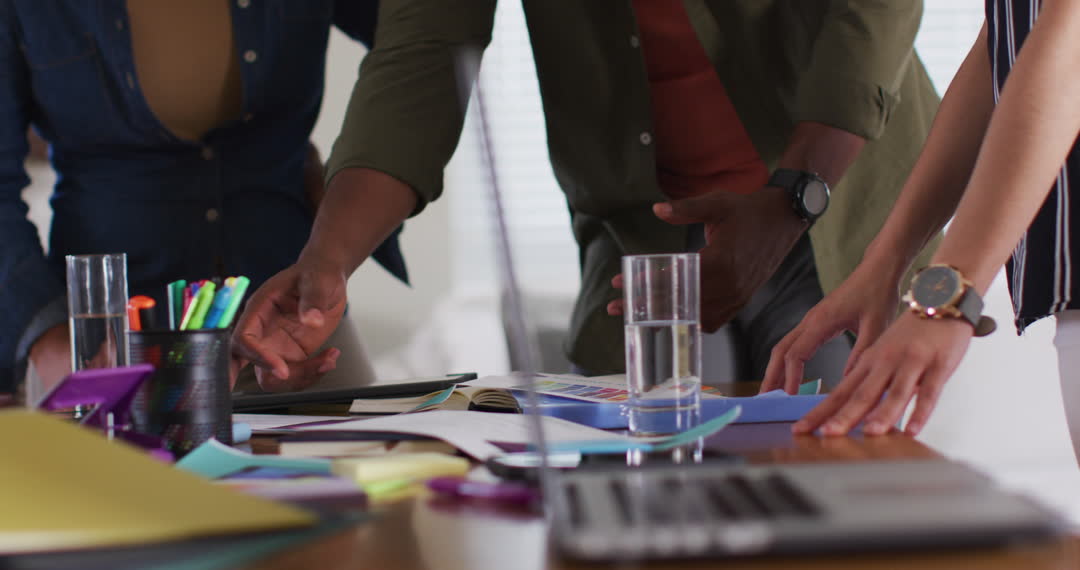 - Team Collaboration at Creative Workplace Desk