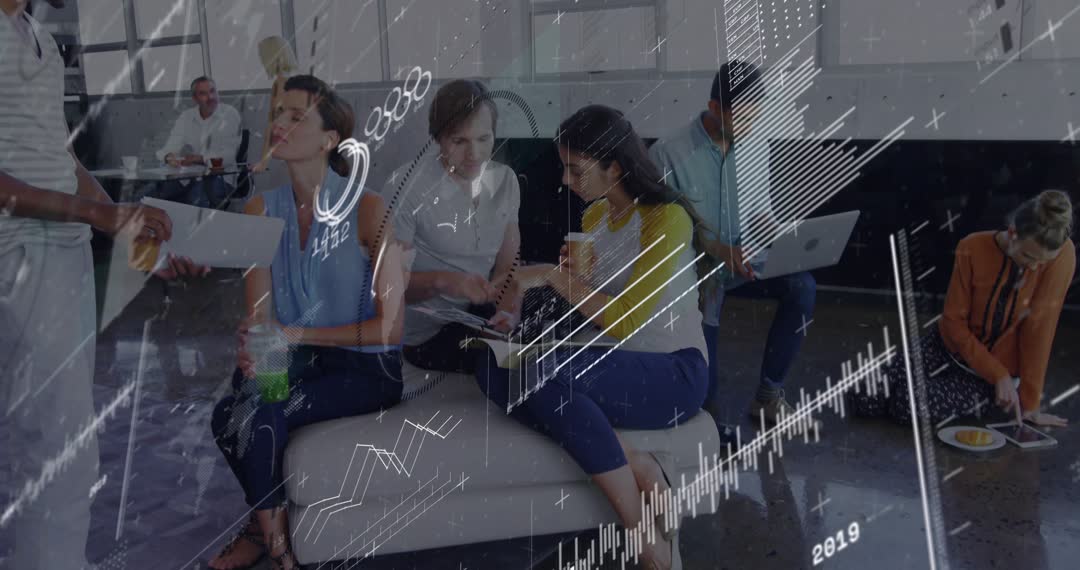 - Team Collaboration with Animated Charts in Modern Office Environment