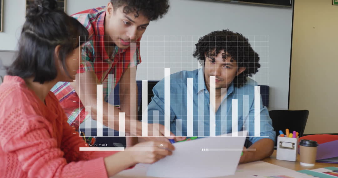 Team Collaboration with Digital Financial Data Overlay Video