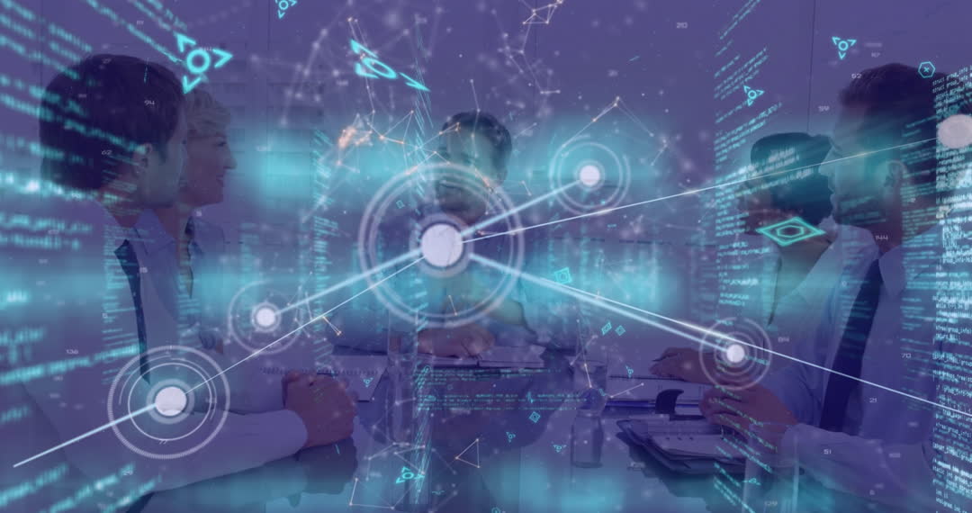 Teamwork Concept: Office Meeting with Tech Strategies Overlay Video