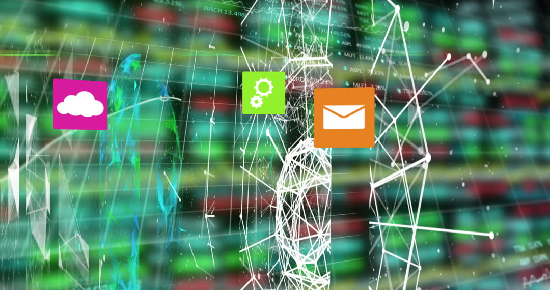 Tech Connectivity with Cloud and Email over Stock Market Backdrop Video