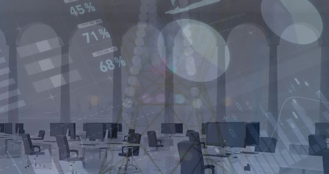 - Tech-Enhanced Empty Office with Overlaid Data Visualizations