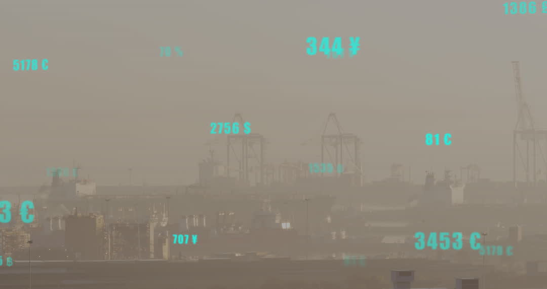 Animation depicts data metrics applied over an industrial cityscape, suggesting global connectivity, network expansion, and business technology perspectives. Ideal for projects focusing on digital innovation and the growth of global systems. Useful in presentations on urban development or technological advancements in industrial sectors.