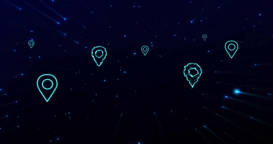 Illustrates concept of global networking with interconnected location icons. Represents data flow in digital networks. Useful for presentations on technology, digital connectivity, data processing, futuristic concepts, and global communications.