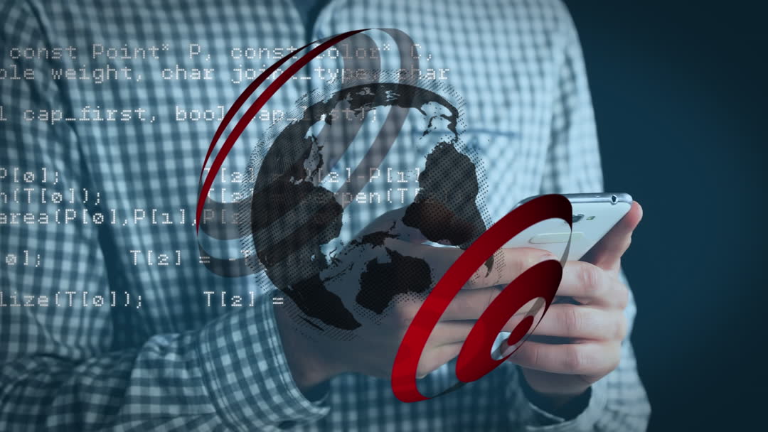 Displaying an illustrative merge of technology with a foreground of code and a globe overlay, while a man uses a smartphone, this creative depiction symbolizes global connectivity and the digital landscape. Perfect for tech companies, software developers, or digital marketing materials seeking to represent innovation and data analytics in the tech industry.