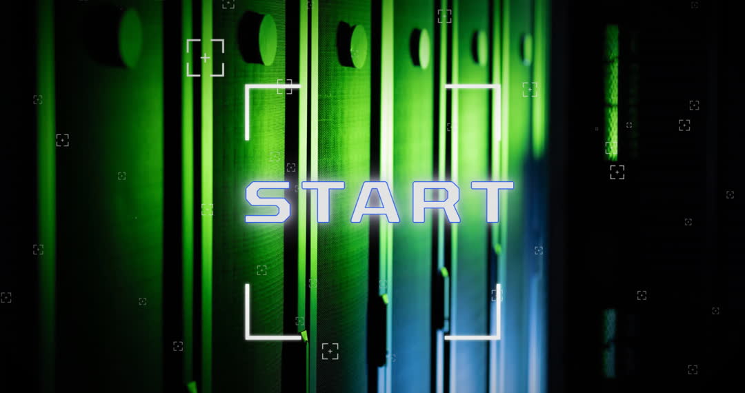 Visual representation embodies the initiation phase in technological systems using dynamic start text over computer servers. Ideal for multimedia uses, websites promoting technological solutions, or presentations on data innovation and global connectivity. Perfect for articles that focus on technological advancements, business growth, and digital infrastructure.