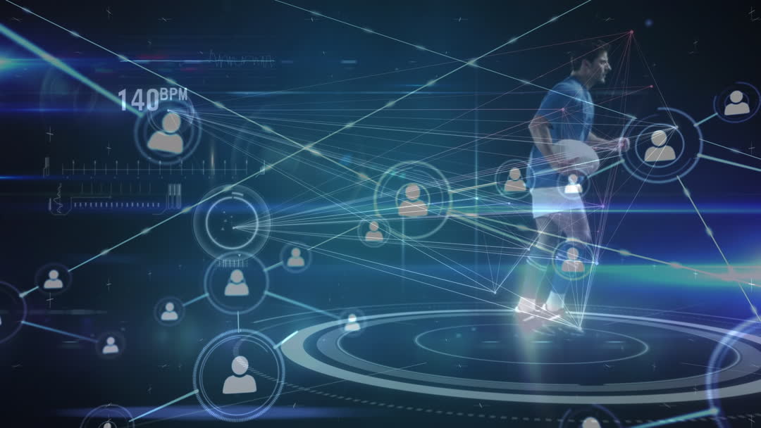 - Technological Network Overlay on Rugby Player Innovating Sports