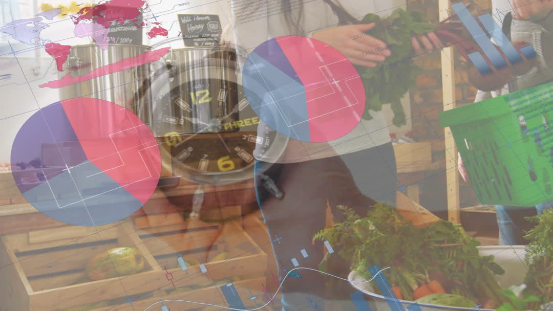 Technology and Data Mixed with Grocery Shopping Scene Video