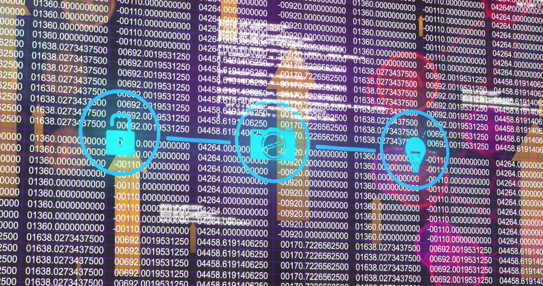 Abstract video features blue technology icons overlaid on a background of colorful lines and numerical data. Displays financial or computing pattern focused on global data or cyber security themes. Suitable for illustrating concepts related to digital analysis, cyber protection, financial technology platforms or digital transformations, ideal for blogs, presentations, articles on technology advances, and resources covering global business transitions.
