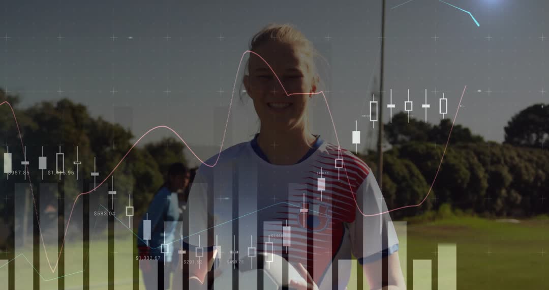 - Teen Football Athlete with Financial Charts Overlay Outdoors