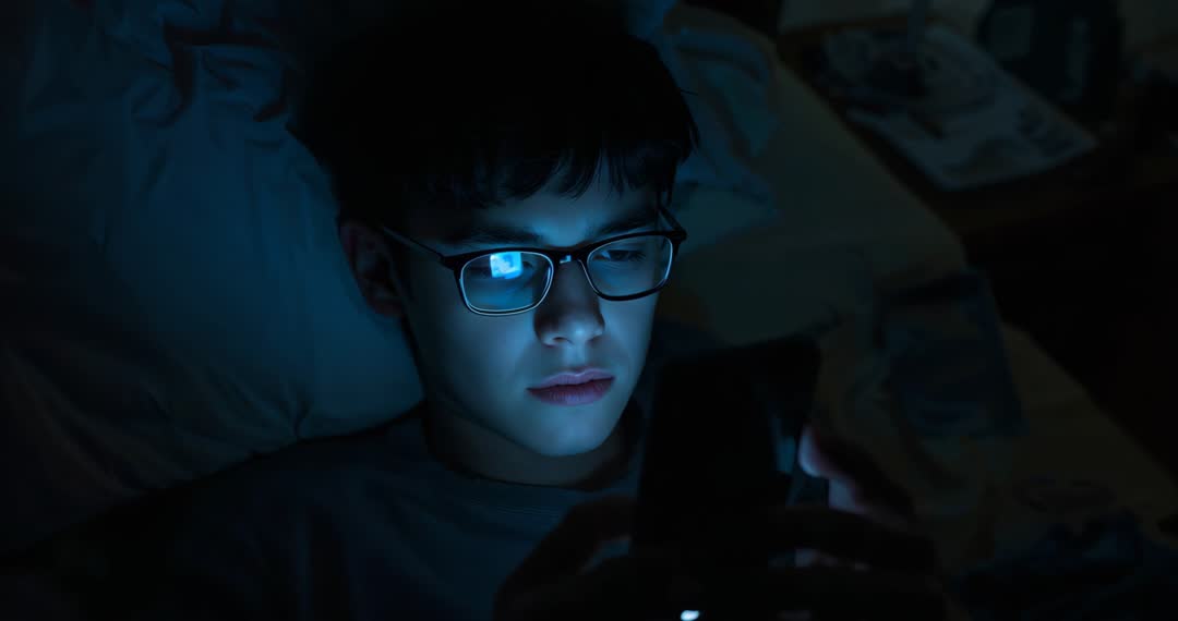 - Teen Using Smartphone at Night in Bedroom Illuminated by Screen Light