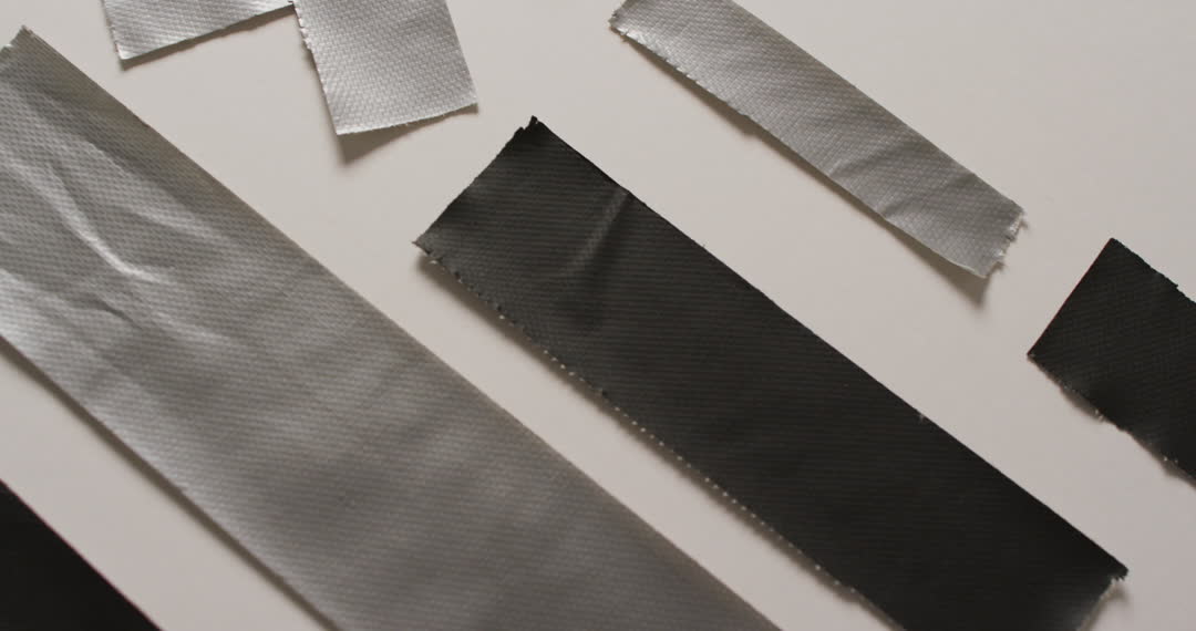 Textured utility tapes arranged on a neutral background, displaying various shades of black and white. Ideal for illustrating concepts such as simplicity, minimalism, or industrial materials. Useful in material science presentations, or as abstract visual elements in design projects.
