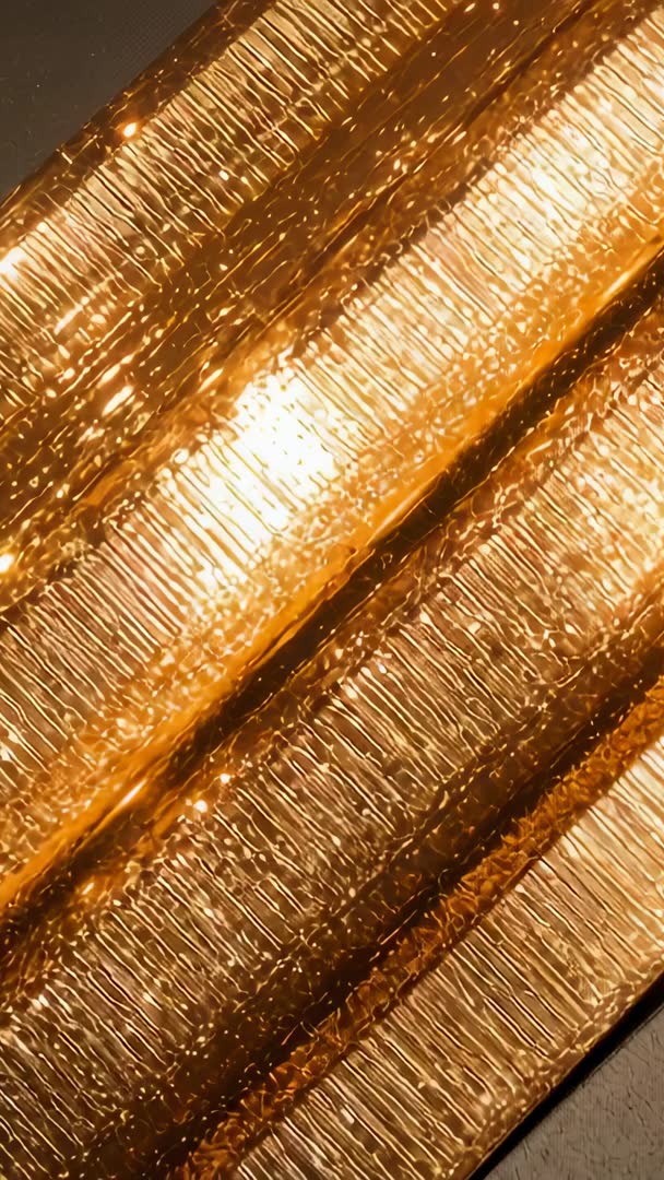 AI Generated Image. Tilting camera capturing glint sliding across three parallel gold rods, producing pulsing sheen and rich warm reflections. Offering close-up metallic texture and smooth motion, ideal for luxury brand intros, product reveal backgrounds, social media Reels, vertical ads, website hero headers. Pairing well with minimal typography, slow reveal transitions, and subtle particle overlays. Suggesting loopable trim and warm color grade, adding ambient sound design for enhanced premium feel. Including usage ideas for jewelry and watch promos, beauty and cosmetics campaigns, high-end packaging visuals, event openers, editorial titles, and motion graphics overlays. Delivering 9:16 vertical composition optimized for mobile-first platforms and short-form video content.