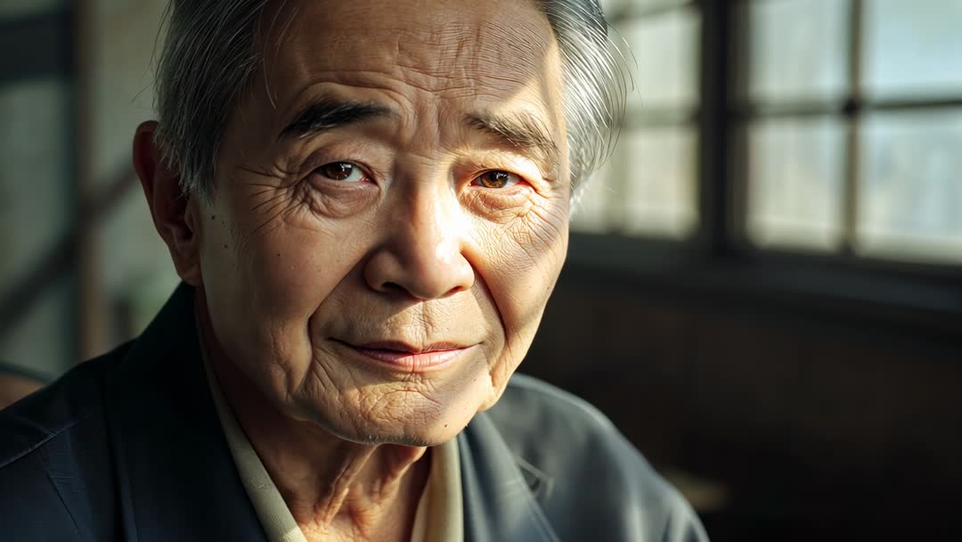 AI Generated Image. Closeup video clip showing tilting senior man smiling toward camera as sunlight through window highlighting facial lines and soft expression. Shot capturing intimate mood with warm tones, shallow depth of field, and slow camera push creating sense of presence and reflection. Serving well for elder care campaigns, healthcare marketing, retirement lifestyle projects, documentary sequences, testimonial clips, and mental health or aging gracefully stories. Usable as hero footage for website banners, background for interview sequences, promotional spots, social media reels, and stock B-roll. Suggested edits include gentle color grading to enhance warm highlights, adding soft piano or acoustic bed for emotional tone, cutting to medium shot for contextual variety, adding lower third for subject name or message, and keeping clip length between 8 and 30 seconds depending on platform. Tagging and licensing suggestions include themes of aging, senior wellbeing, wisdom, intimate portrait, natural light mood.