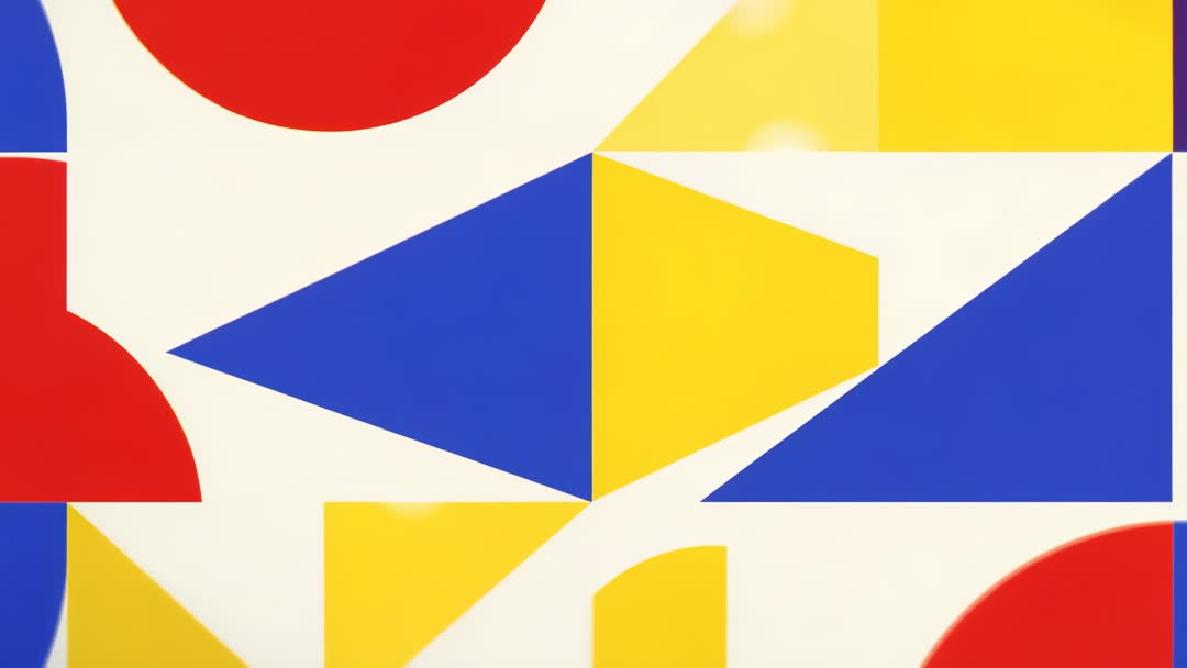 AI Generated Video. Digital animation featuring primary colored geometric shapes with a timer effect causing flashes and glints between features, set against an off-white background. Bright, cheerful tone ideal for modern digital art usage, educational videos on basic shapes and colors, dynamic backgrounds in presentations, or artistic visualizers compatible with various digital interfaces.