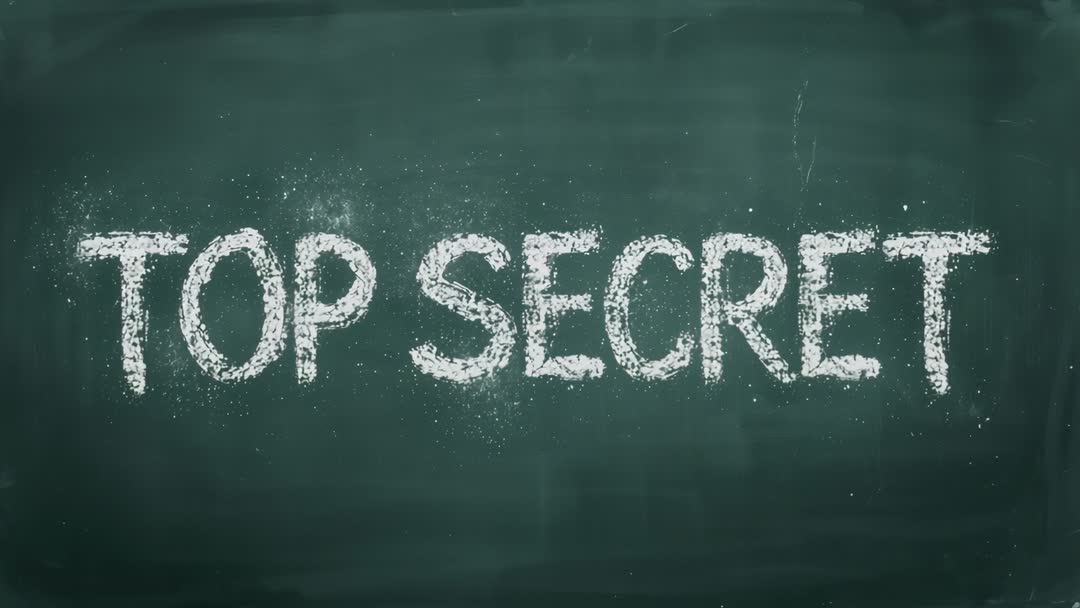 AI Generated Image. Video clip showing 'TOP SECRET' spelled in chunky white chalk across dusty green blackboard, chalk particles scattering and smudges adding gritty texture. Visual mood conveying secrecy and urgency while evoking retro classroom aesthetic, suitable for thriller openings, security awareness, data protection campaigns, or presentation intros. Use as title sequence, social media teaser, website hero background, or printable poster; overlay bold typography or animated stamp for emphasis. Color palette featuring deep green and white with high contrast, grainy texture adding authentic chalk feel; easy to loop or trim for short spots. Ideal for editorial stories about leaks and investigations, corporate training on privacy, or marketing creative needing mysterious or authoritative tone.