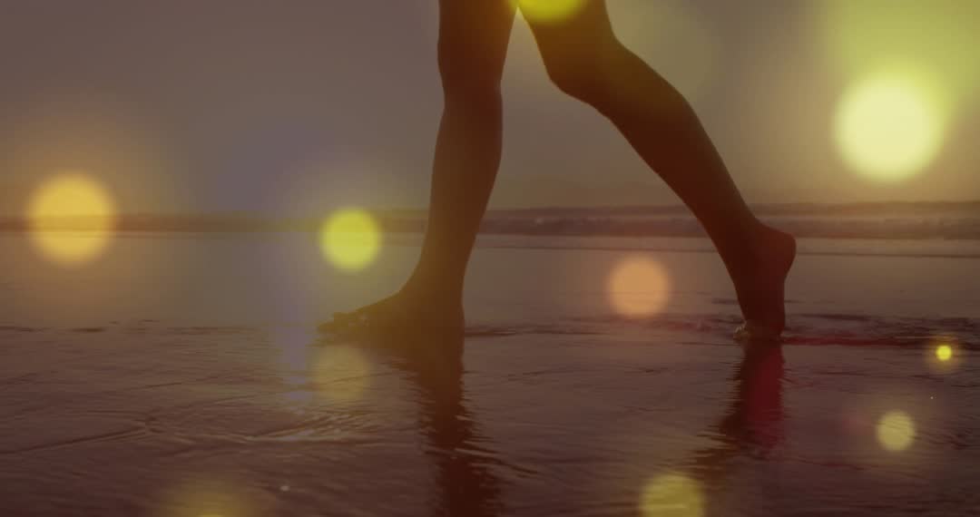 Tranquil Stroll on Beach with Magical Light Orbs Video