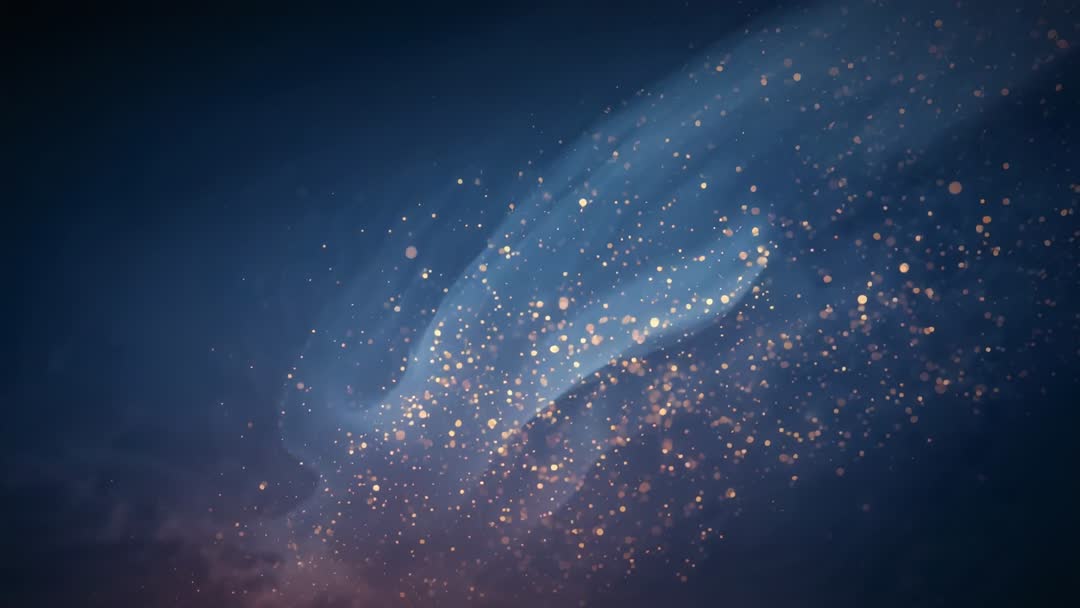 - Translucent Blue Nebula Stream Gathering Golden Particles in Slow Motion