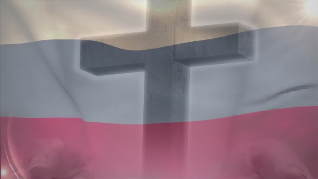 This digital render shows a tricolor flag gracefully flowing with a prominent cross emblem situated on the fabric. The video carries a strong nationalistic and inspirational theme, enhanced by the emblem reappearing and vanishing, suggesting transformation or change. This can be useful cue to multimedia editors designing videos, patriotic presentations, or culminations focusing on national pride and digital animations showcasing a variety of artistic projects in related journeys embellishments decorations creative concepts.
