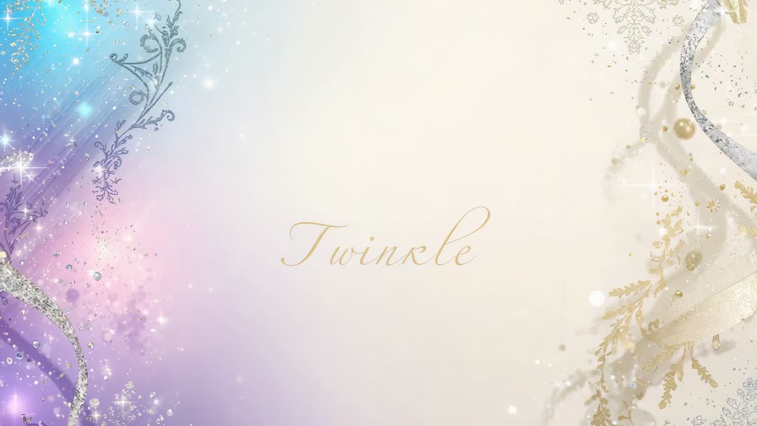 - Twinkling Gold Calligraphy Title Reveal on Pastel Gradient with Metallic Ribbon and Sparkle