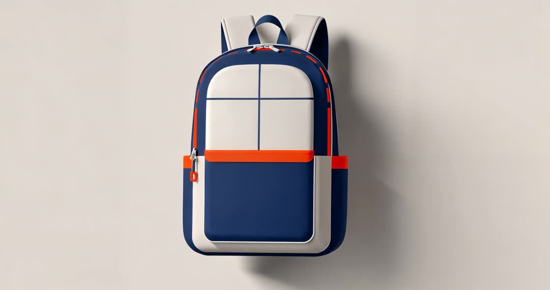 - Two-Tone Backpack Rotating on Minimalistic Display