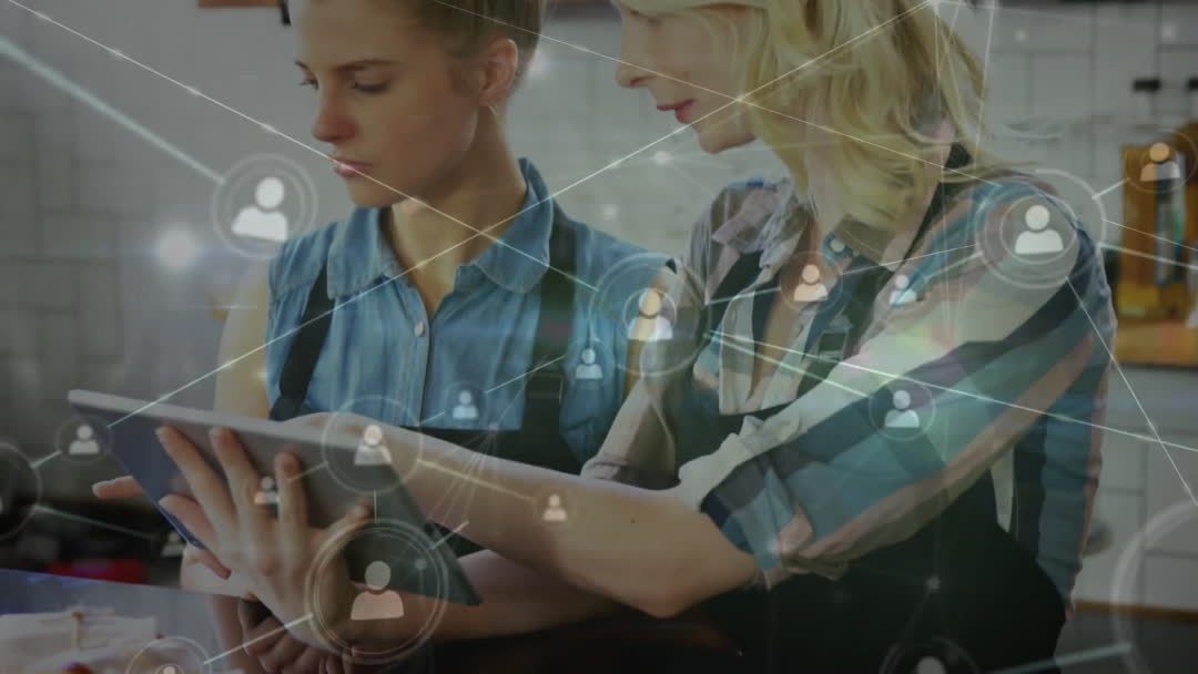 href="https://pikwizard.com/video/two-women-collaborating-on-digital-tablet-with-network-overlay/d992c35ecf238cb52deb3046742927af/"