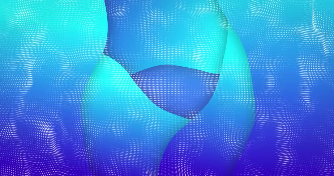 Undulating mesh wave revealing expanding oval aperture across shifting turquoise to deep blue gradient, dotted halftone grid adding depth and soft motion. Smooth membrane-like forms morphing and pulsing, creating organic flow and three-dimensional illusion. High-resolution loop offering versatile background for technology and science projects, UI intros, corporate presentations, broadcast design, social media promos, event visuals, music visualizers, website hero sections. Color palette supporting overlay text and logo animation. Cropping or panning for 16:9 and vertical formats, applying soft glow or particle overlays, using speed ramping for emphasis. Perfect for creating modern title reveals, seamless transitions, ambient backdrops, data visualization overlays, and branding opener sequences.