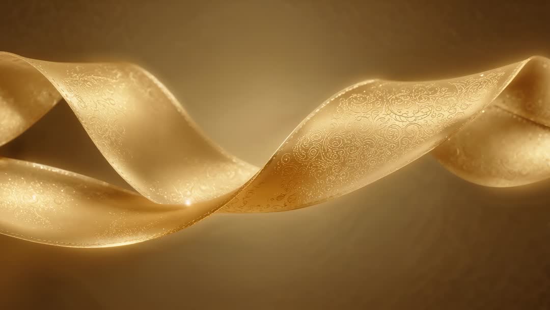 AI Generated Video. Looping abstract motion clip showing undulating ornate gold ribbon flowing and glimmering across warm glowing background. Intricate filigree texture and subtle sparkles creating luxurious elegant mood. Ideal for luxury branding intros, product reveal sequences, holiday and celebration overlays, website hero loops, motion graphics backplates, broadcast bumpers, social media ads. Easily adapting to color grading and compositing with text or logo for title animations. Deliverable for 4K and UHD projects, seamless loop friendly and compatible with common NLE and motion design workflows.